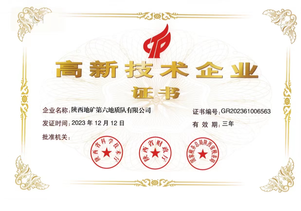 喜報(bào)!陜西地礦六隊(duì)取得高新技術(shù)企業(yè)證書(shū)